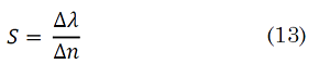 Donde δ es la diferencia de camino óptico, K es un entero, λ es la longitud de onda de la radiación incidente, n el índice de refracción de cada célula y Δd es la diferencia de camino geométrico (espesor de la nanocavidad). Por tanto, al incrementar n debido al cambio de célula y manteniendo constante Δd y K, debe existir un incremento de λ.