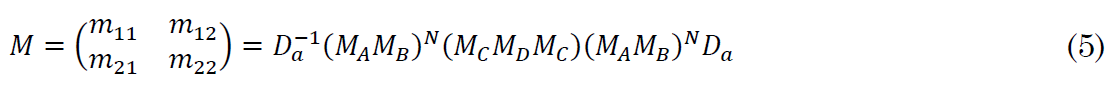 Por lo tanto, la matriz de transferencia total para la estructura (AB)N(CDC)(AB)N puede ser calculada como se muestra en (5).