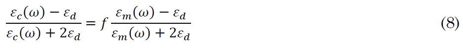 La constante dieléctrica efectiva εc(ω) del nanocompuesto es determinada usando (8) de Maxwell-Garnett [27]-[28].