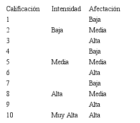 Por su parte, para determinar el valor de importancia se aplicó (2).