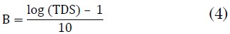 ② A continuación, y de manera paralela a la selección de los inhibidores, se debe proceder a la determinación del Índice de Saturación de Langelier [38] de las muestras de agua a temperatura ambiente, con la información aportada por las propiedades determinadas en la primera fase. Se utilizó el Índice de Saturación de Langelier [38] como método predictivo para verificar si las sales contenidas en las muestras de aguas formarían incrustaciones o se mantendrían disueltas; para ello se emplean (1), (2), (3), (4), (5) y (6):