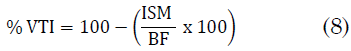 ⑩ El cálculo del índice de saturación se aplica antes y después del suministro del tratamiento químico con la finalidad de determinar si la adición del mismo ocasiona algún cambio representativo. Asimismo, se calcula un porcentaje de variación del LSI, para determinar cuantitativamente la diferencia experimentada por el índice posterior al tiempo designado. Los resultados se obtienen a través de (8):