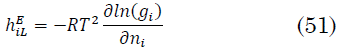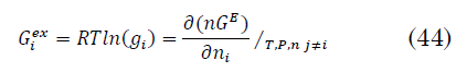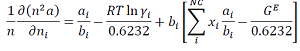 Los coeficientes de actividad se calculan a partir de la definición de la energía libre de Gibbs en exceso parcial (44):