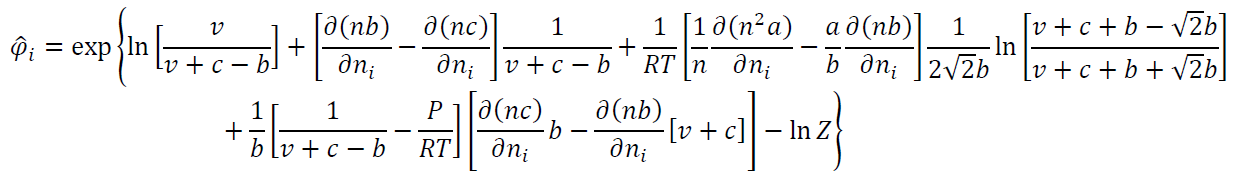 Sustituyendo en la ecuación cúbica modificada se obtiene la siguiente expresión para el cálculo del coeficiente de fugacidad por (33) a (36).