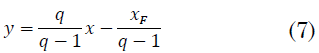 Al realizar tratamientos matemáticos de las ecuaciones se puede llegar a la expresión de la línea q (7), que establece la intersección de ambas líneas de operación, la intersección de la línea q con la línea de 45°, en donde x = y xf, donde xf es la composición total de la alimentación [15].