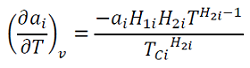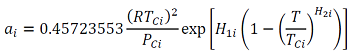 Los parámetros de las sustancias puras se calculan a partir de la temperatura del sistema y las propiedades críticas de cada componente (TCi, PCi) y los factores acéntricos wi y polar ci mediante las siguientes (23) a (31).