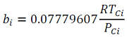 Donde a, b y c en la ecuación de Peng-Robinson son los parámetros de la mezcla que están en términos de temperatura crítica, presión crítica y la constante de los gases ideales.