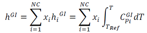Para el cálculo de la entalpía conviene reconocer que la entalpía de una mezcla de gases ideales hGI a (T, P) está dada por (37).