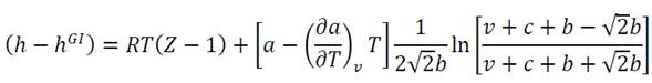 La diferencia entre la entalpía real de la mezcla (h) y la entalpía del gas ideal se calcula utilizando la ecuación de estado modificada, tal como se representa en (38).