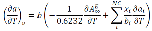Esta expresión es válida para cualquier regla de mezcla, la que fija el valor de la derivada de a. Para las reglas de mezclado de Huron-Vidal se obtienen (39) a (41).