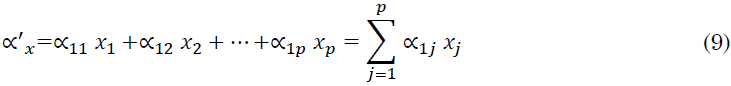 El análisis de componentes principales permite el paso de un espacio vectorial Rn a un subespacio Rm ( n > m ) sin pérdida de información relevante, maximizando su varianza. El PCA calcula una matriz de autocorrelación de los datos con sus vectores propios y los ordena de acuerdo con su valor propio para posteriormente normalizarlos [27]. La componente se calcula mediante un conjunto de variables originales (x1, x2 , …, xp ), siendo x un vector con p variables aleatorias [28], como en (9):