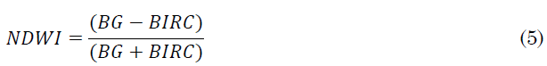El índice de diferencia normalizada del agua permite medir los cambios en el contenido de agua de la vegetación, permitiendo identificar el nivel de saturación de humedad de la vegetación [21], (5).