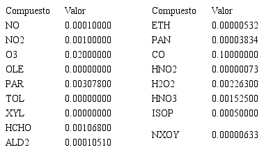 Las condiciones iniciales para el modelo fueron las sugeridas por Christopher Emery de ENVIRON [12] y se presentan en la Tabla 1.