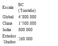 En la Tabla 7 se muestran las estimaciones de emisión anuales de BC por diferentes inventarios globales y regionales para el año 2000, los cuales muestran que la variación de estas emisiones es considerablemente amplia, donde los rangos a nivel global varían de 4’500.000 a 12’600.000 Ton/año, mientras que los rangos a nivel regional varían de 260.000 a 1’800.000 Ton/año [15].