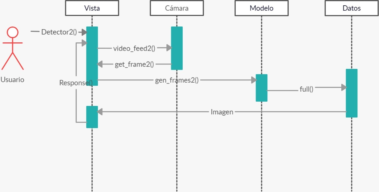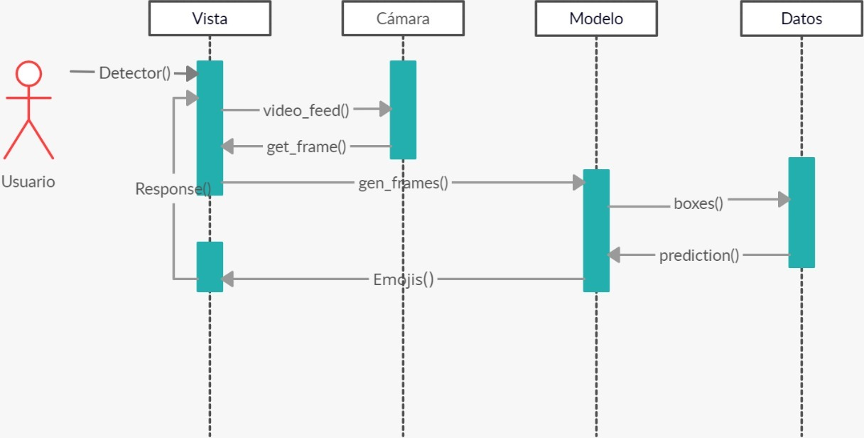 En las Figuras 5 y 6 se presentan los diagramas de secuencia diseñados para cada uno de los modelos, detección de emociones y detección de atención, presentando la interacción entre los frames desde que el usuario entra a la vista del modelo hasta mostrarle el resultado dentro de esa misma vista.