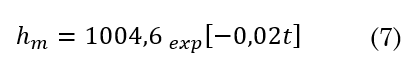 Donde tm es el tiempo de residencia del acero en el molde y q el flujo local de calor en el molde. Bajo esta metodología, también es posible determinar un coeficiente de transferencia en la región del molde hm para describir la distribución del flujo de calor, como una función del tiempo de residencia del acero en el molde. Por ejemplo, en (7) el coeficiente considera una resistencia térmica debido a la formación de una brecha por el aire [25]: