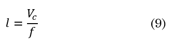 Producto del movimiento del molde, se crean marcas de oscilación en los productos de colada [89], que son ondulaciones formadas en la superficie del material paralelas entre sí y perpendiculares a la dirección de colada [69], [93]. La profundidad de la marca de oscilación depende de los polvos colador, la carrera del molde, la frecuencia de oscilación y la velocidad de colada [4], [93], [94]. En [92] observaron que, a mayor frecuencia de oscilación, mayor es el impacto en las fluctuaciones, aumentando la altura de las olas y la velocidad en la superficie. En [69] determinaron que, cuanto mayor sea la tensión interfacial, más profundas y anchas serán las marcas. En (9) y (10) se definen la distancia entre las marcas de oscilación, l, y la profundidad, d, en las superficies de la losa [69], [72]: