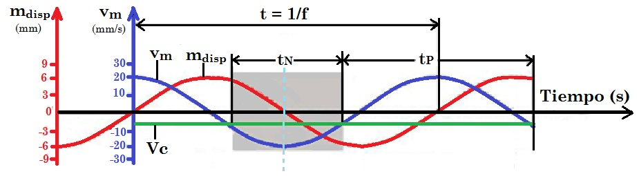 Donde Vc es la velocidad de colada, f la frecuencia de oscilación, tN es el tiempo de desmolde negativo y S la carrera del molde. Es de notar que la frecuencia de oscilación varía en función de los cambios de la velocidad de colada [14]. En la Figura 9 se muestran los movimientos hacia arriba (desmolde positivo, tP ) y hacia abajo (desmolde negativo, tN) que realiza el molde según la curva roja (mdisp). Durante tN el molde desciende más rápido (Vm) que la velocidad de colada (VC) presentado por un cuadro gris, mientras que tP se refiere al resto del ciclo. En el periodo de tP se efectúa el despegue de la costra de acero de la pared del molde [15], [24], [94], y en el periodo de tN, el polvo de colada se infiltra entre la costra y el molde [93], [94]. La diferencia de velocidad entre el molde y la losa (Vm>VC) trae como resultado mejoras en la calidad de la superficie de las piezas de fundición, debido a que la costra se desprende de las paredes del molde bajo la influencia de pequeño esfuerzo de compresión y no se somete a esfuerzos de tracción [72].