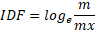 Los algoritmos basados en frecuencia calculan un puntaje para cada frase de acuerdo con la frecuencia de las palabras (TF) que la componen. Para un algoritmo, estos puntajes son calculados al utilizar las técnicas de frecuencia de término – frecuencia inversa de documento (TF-IDF, por sus siglas en inglés) [18], que se basa en la frecuencia de una palabra en el documento y en un conjunto de documentos. Para calcular el puntaje TF-IDF, primero se debe hacer una eliminación de conectores, ya que son los que más se repiten, y determinar el número de veces nx que un término x aparece en un documento y se calcula el término TF dado por (1), donde n es el número total de términos en el documento. Adicionalmente, se debe calcular el IDF de acuerdo con (2), donde m es el número total de documentos considerados y mx es el número de documentos que incluyen el término x. Finalmente, ambos índices se combinan mediante (3). Para el cálculo de TF-IDF:
