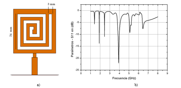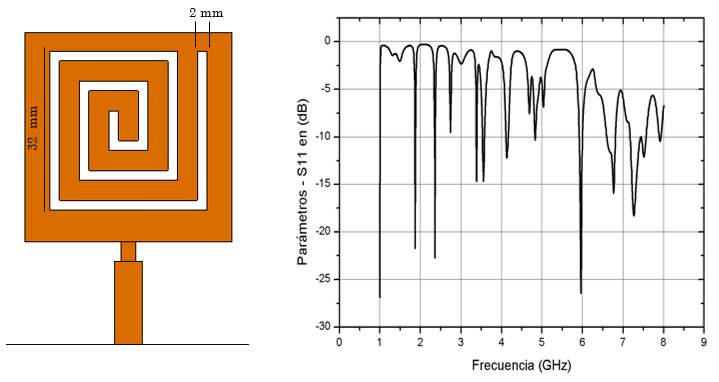 En vista de que la geometría es relativamente simple, las antenas en espiral poseen características atractivas como fácil fabricación, bajo costo, ser livianas y de fácil integración con circuitos de microondas y sensores de bajo consumo de potencia. Igualmente, pueden ser utilizadas en aplicaciones móviles debido a que sus características la hacen antena multibanda. Se han construido algunas antenas de microcinta con diseño en forma de espiral circular o cuadrada, en su mayoría para ser utilizadas en la transferencia de energía por acoplamiento inductivo [20], las cuales se utilizan para carga de implantes médicos [21] y carga de baterías a corta distancia [22], así como para integrar la conexión entre tarjetas para identificación por radiofrecuencia (RFID, por sus siglas en inglés) y futuros chips de banda ultra ancha (UWB, por sus siglas en inglés) y frecuencia ultra alta (UHF, por sus siglas en inglés) [23].