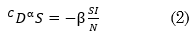 Where 𝑛 – 1 ≤ 𝛼 ≤ 𝑛. The SIR model is the classical model used to analyze the spread of infectious diseases over time in a community whose population is assumed to be constant and where the reinfection rate is negligible. It divides the population into three disjointed sets: susceptible (S), infected (I), and recovered (R).