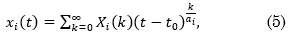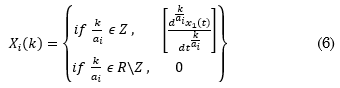 Where 𝑎𝑖 is an integer value (usually the lowest one) for which aiαi is an integer, and coefficients 𝑋𝑖(𝑘) are given by the fractional transformation of the function defined as in (6).