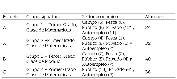 Las características de las escuelas y grupos participantes se observan en la Tabla 2 (el Grupo 1 y el Grupo 2 son de la Escuela A), considerando el sector económico donde laboran los padres de los estudiantes y cantidad de alumnos por grupo. Con base en estos datos del estudio, se evaluaron fundamentos de matemáticas, identificación y aplicación de figuras geométricas en el diseño estructural del mobiliario, seleccionando las figuras más adecuadas para la organización del mobiliario, así como flujos de circulación y determinación de las restricciones físicas trabajando en equipo. Asimismo, se trabajó con objetivos técnicos para definir cómo utilizar la aplicación para que esta fuera fácil de descargar y utilizar en cualquier dispositivo móvil y proporcionar el soporte de internet inalámbrico necesario en estos dispositivos, además de elaborar y/o asociar imágenes descriptivas relacionadas con el mobiliario regular de un salón de clases. Por último, se proporcionaron alternativas para calcular el área o perímetro si así lo considerasen necesario.
