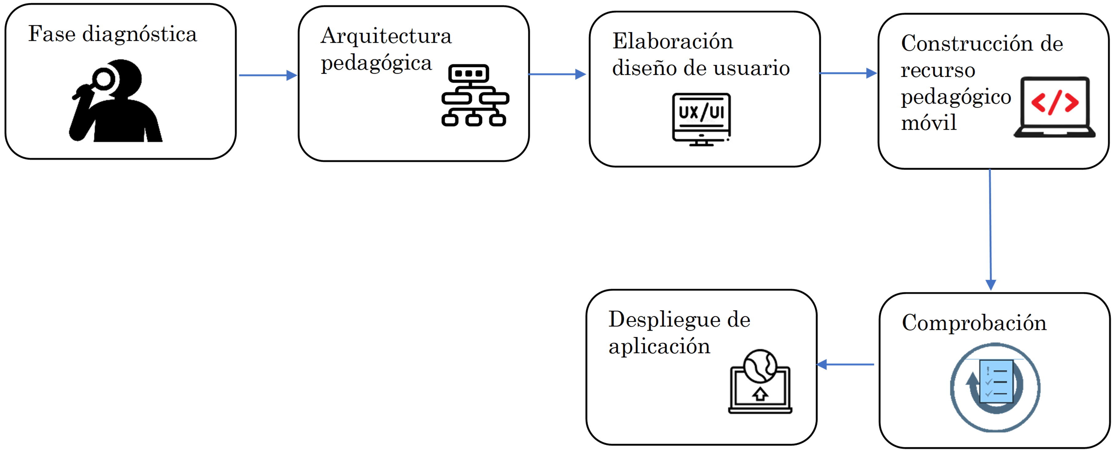 A continuación, se presenta una serie de fases que los equipos de trabajo de profesores pueden seguir para desarrollar aplicaciones móviles educativas.