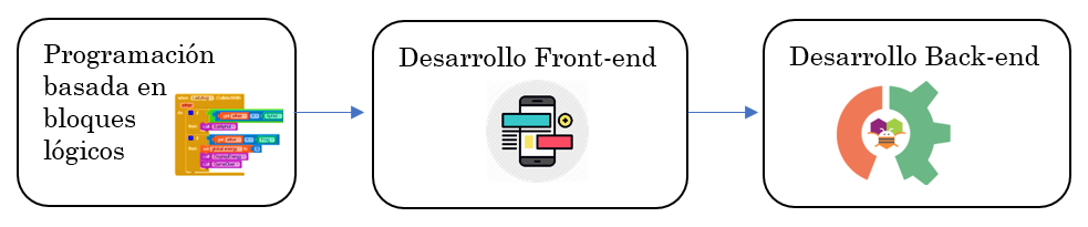 Posteriormente, en la etapa de roles del equipo de desarrollo, se designan las funciones de un equipo multidisciplinario compuesto por: líder (dirige todo el proceso, reconoce completamente todas las fases del modelo de desarrollo y posee suficientes competencias pedagógicas y tecnológicas ; también se encarga de ejecutar pruebas unitarias y de contexto, y debe difundir los resultados de estas a los demás integrantes del equipo de trabajo); docente de tecnología e informática de la institución educativa (se encarga de instruir a los estudiantes y docentes de otras áreas para que desarrollen habilidades básicas en programación, utilizando bloques lógicos y herramientas de pseudocódigo [39]); semillero de investigación (grupo de estudiantes de los grados 9 a 11, con conocimientos en el uso de herramientas de programación, quienes se encargan de hacer el acompañamiento respectivo al docente de área para que se construya la aplicación móvil); docente de área (identifica la necesidad y recibe el acompañamiento constante del equipo de trabajo) [40].