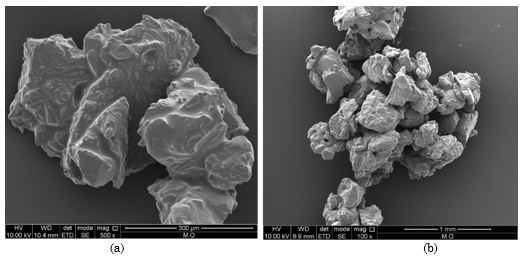 La mayor densidad aparente del cocristalizado de maracuyá respecto al cocristalizado de guayaba se puede atribuir a la mejor incorporación del azúcar en el jugo de maracuyá que en la pulpa de guayaba, pues al ser el cristalizado de maracuyá menos amorfo (Figura 3b), que el cocristalizado de guayaba (Figura 3a), evidencia que la sacarosa cristalizó mejor, fue más compacta y formó caras más planas, obteniéndose un producto menos poroso.