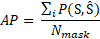 Luego de obtener la precisión para cada máscara, se calcula la precisión promedio (AP, por sus siglas en inglés) entre dos imágenes con sus máscaras de segmentación, como se describe en (3).