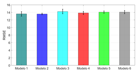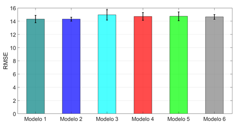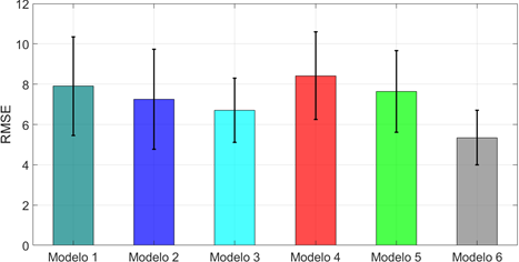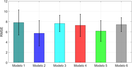 Estos hechos también se pueden comprobar en la Tabla 6 y en la Figuras 9 y 10 que muestran la métrica RMSE calculada a través de (2). Por otro lado, la Tabla 6 muestra el CC calculado a través de (3) para todos los modelos de estimación entrenados.