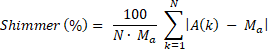 Por otro lado, el Shimmer permite estimar las perturbaciones en la amplitud y se calcula con (3).