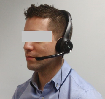 En este trabajo se pretende cubrir el análisis de voz y habla en pacientes con disfagia. Para el análisis de voz se consideró la producción de vocales sostenidas, y, para el análisis del habla, se consideraron tareas de habla continua y diadococinesia. Para la adquisición de las señales se utilizó la diadema Logitech H390. El micrófono se posicionó a una distancia aproximada de 5 cm de la boca, como se observa en la Figura 1.