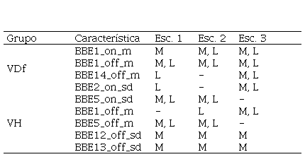 Si bien cada una de las vocales también revelaron múltiples características en el grupo VH, muchas de ellas están presente en una o dos vocales a lo largo de los tres escenarios propuestos, por lo que no cumplieron los criterios de reporte establecidos.