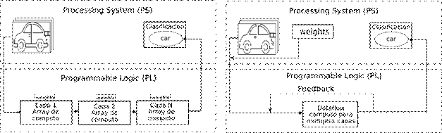 On the other hand, the use of development environments has allowed researchers to control memory usage and parallelization techniques on these reconfigurable devices. In [21], [22] information from a trained CNN network is synthesized in hardware through the Vivado HLS high-level synthesis tool. The tool defines how the Intellectual Property Core (IP Core) that will contain the information of the images to be classified should be generated. The IP Core is generated using internally developed high-level wrappers to facilitate communication with direct access to the DMA memory. In [19] is presented a similar study, but they proposed an analytical design model called Roofline in their development. The model can be used to quantitatively analyze the computational performance and memory bandwidth required for any solution of a CNN design.