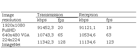 For the image acquisition and communication system, three different tests were performed varying the resolution of the acquired image and the encoding and decoding quality factor. In each test, we recorded data on the number of frames per second (fps) and the transmission rate measured in kbps (Kbits per second). Table 2 shows the results with different resolutions. It can be seen that, as the input image resolution increases, the frames per second decrease. However, the fps obtained by setting the image to the standard resolution of NAO’s camera (i.e., 640x480) are much higher than those expected for a real-time application. By focusing the research work on the NAO humanoid robot, this resolution is taken as the entry point to the given data processing system for each heterogeneous architecture when running the CNN.