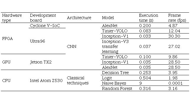 Table 7 shows that, when it performs the inference, the embedded system takes 0.037 seconds, which is equivalent to 27 fps.