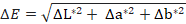 Donde ∆E es la diferencia total de color en la escala CIELAB, ΔL* = diferencia en luz y oscuridad, Δa* = diferencia en rojo y verde, Δb* = diferencia en amarillo y azul.