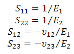 The S coefficients in (2) depend on Poisson’s and Young’s Modules of material. A symmetrical lamination is considered for the plies, so they have a specific thickness, specific material properties and a ply orientation, which for this case will be unidirectional through (1). The purpose is to find the deformation in direction and compare it with a finite element analysis to validate the results obtained in the simulation.