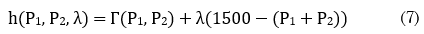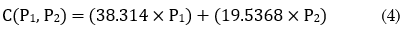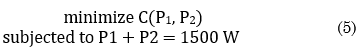 To operate the microgrid at the lowest cost, the combination of P1 and P2allowing the minimum of (4) is required, subjected to restriction (2) under variations on generation power, as it is shown by (5):