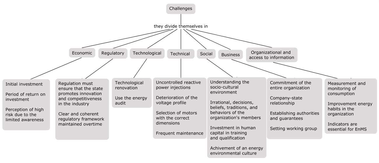 In this context, it is clear that industrial EnMS implementation is a crucial aspect for reducing GHG emissions and encouraging and accelerating the energy transition; while it allows industries to alleviate losses and inefficiencies. Therefore, it makes sense to list the motivators and challenges of integrating these systems in the industrial sector.