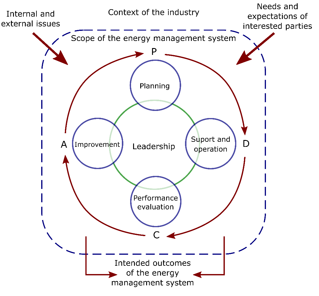The EE promotes the implementation of the EnMS. Thus, it is essential to know the international recommendations regarding this issue to mold them to the Latin American context and therefore obtain savings in industrial expenses, consumptions and emissions, and increase the rational use of energy [23], [24]. Considering this perspective and the interest in solving the environmental and energy problem, in 2011, the Standard "ISO 50001 Energy management systems - Requirements with guidance for use" emerged due to the impact on EE and climate change that the energy management can exercise [25]. This standard provides a framework for continuous improvement, seeking to reduce industries' consumption and promoting the emergence of national policies that bet on this regulation [26]. The ISO 50001 standard collects some of the best international practices related to the development, maintenance, and operation of energy management practices at all organizational levels, taking as a pillar the cycle: Plan, Do, Check, and Act (PDCA). This cycle allows continuous improvement of energy performance to be achieved with quantitative results that the organization can accomplish in consumption and EE, as can be seen in Figure 1 [12], [23], [27].