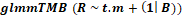 En (4), β simboliza los parámetros estimados de las covariables, Z son los parámetros para el efecto aleatorio (en este caso para las biomasas), R es la matriz de varianzas y covarianzas marginales de y dado los grupos y|u.