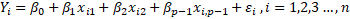 Este tipo de modelo parte de un modelo de regresión lineal, el cual es una función lineal que intenta modelar una respuesta “y” a través de una combinación lineal de predictores o covariables “x”. Si se tienen p-1 covariables el modelo de regresión lineal múltiple se puede expresar como (1):