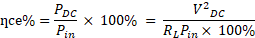 Donde V_DC= Tensión de CC de salida medida, R_L= Resistencia de carga en la salida.