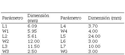 Tabla 1. Parámetros de la Antena propuesta. Fuente: Elaboración propia.