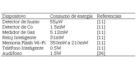 Es importante tener en cuenta que el nivel de potencia alcanzado mediante el uso de las rectennas propuestas actualmente es bajo, pero es suficiente para las pruebas de concepto. Para encender un dispositivo, es importante conocer la energía consumida por los sensores que forman parte de algunos sistemas por ejemplo sistemas IoT. El consumo de energía de diferentes dispositivos/ sensores domésticos, personales e industriales se resumen en la Tabla 3. Se puede observar a partir de los datos presentados en esta tabla, se requiere energía del orden de decenas de microvatios para que estos dispositivos funcionen correctamente. Otros sensores como los industriales requieren una potencia relativamente alta en milivatios para funcionar de forma continua. Una forma de equilibrar la energía recolectada con la potencia demandada por el sensor es captar energía de forma continua, pero operar el terminal del sensor a intervalos. Esto se puede implementar en los sistemas de IoT de próxima generación al captar la energía generada en un capacitor y ejecutar la operación del sensor a intervalos, lo que da como resultado un método que equilibra la generación de energía con el consumo de energía.