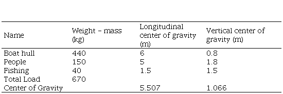 With the three-dimensional model of the vessel, a stability study or equilibrium test was carried out, where parameters such as the " thread ship", which is the weight of the hull or actual weight of the vessel when it is finished, were considered, as well as the "dead weight", which refers to the vessel's load or capacity to carry. To identify the stability behavior of the vessel, the Maxsurf stability component was used, where the previously obtained model and the mass distribution shown in Table 1 were added.