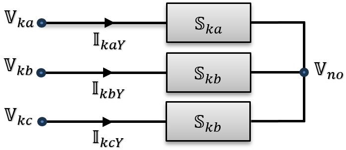 To illustrate the possible load connections of a particular node k node in a three-phase network, consider the Wye and Triangle connections presented in Figures 1 and 2.